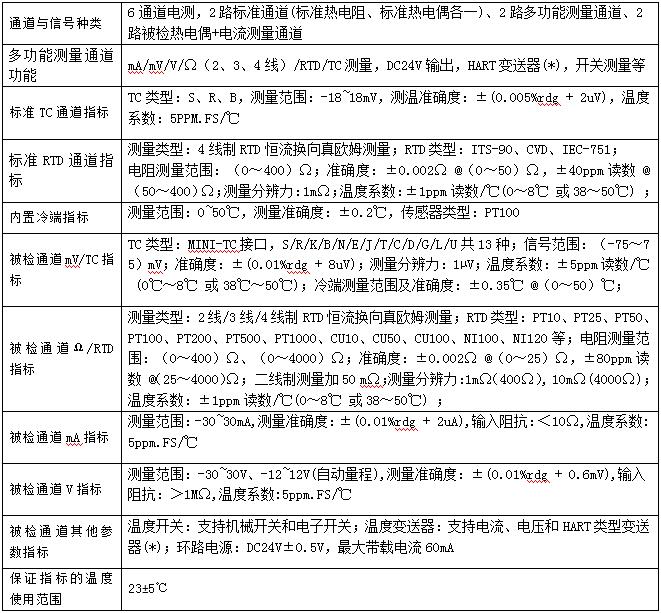 电测信号路数与种类:6通道电测,2路标准通道(标准热电阻、标准热电偶各一)、2路多功能测量通道、2路被检热电偶+电流测量通道;